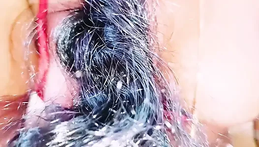 Я терею и трахаю свою киску в позе наездницы с первым неконтролируемым камшотом - в красной сбруе нижнем белье